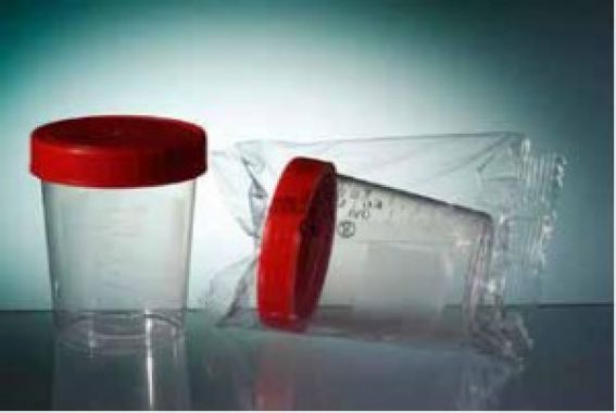 Straight container 180ml PS na H102 Ø52, graduated label wh & screw cap gn, ionised